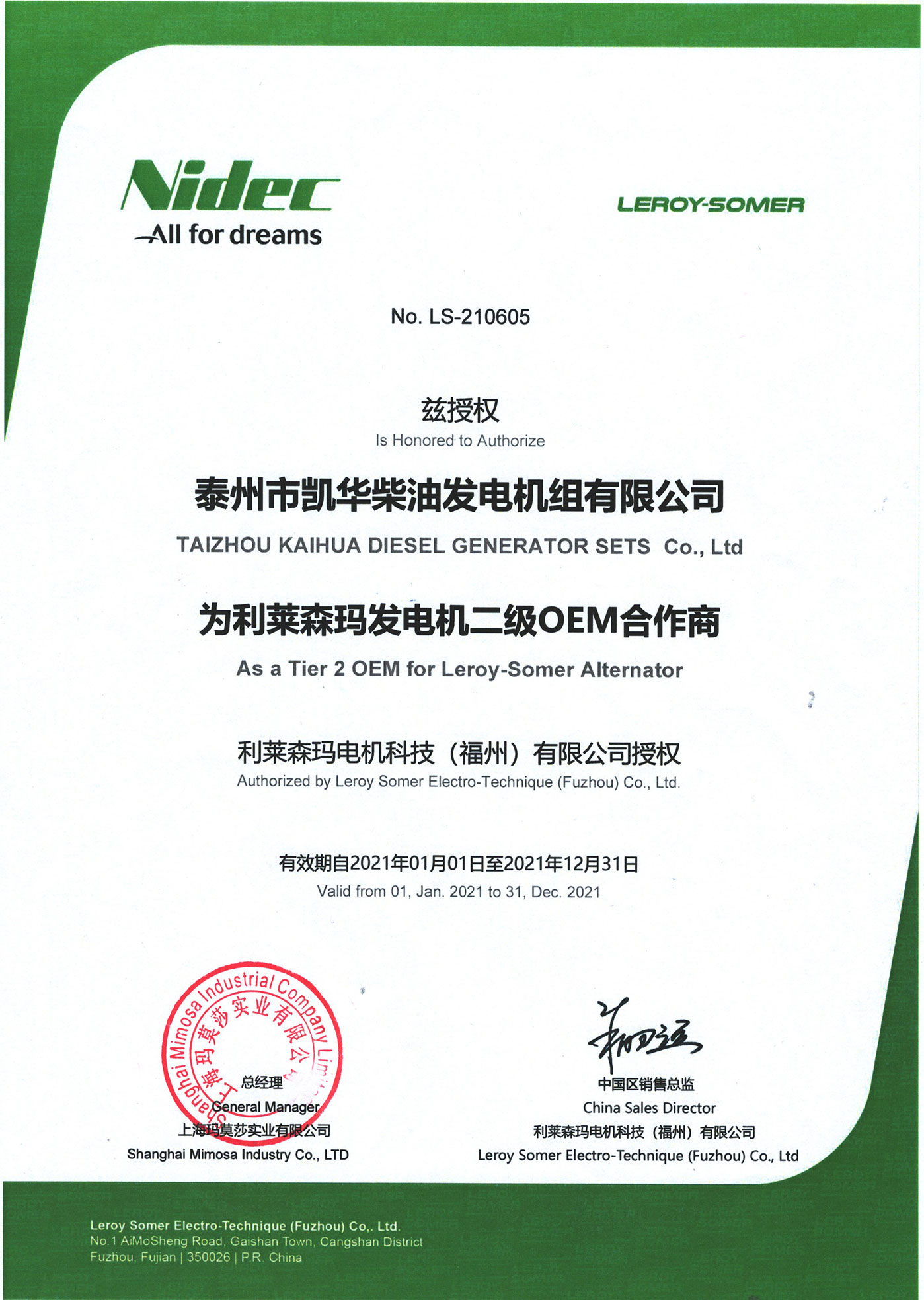 泰州市凱華柴油發(fā)電機(jī)組有限公司創(chuàng)建于2003年,是一家集柴油發(fā)電機(jī)組燃?xì)獍l(fā)電機(jī)組的研發(fā)、生產(chǎn)、銷售為一體的高新技術(shù)民營企業(yè),公司座落于“漢唐古郡,淮海名區(qū)”,具有“鳳凰城”美稱的祥泰之州——江蘇省泰州市,地處中國經(jīng)濟(jì)最發(fā)達(dá)的長三角經(jīng)濟(jì)圈,水陸空立體交通,地理位置十分優(yōu)越。公司目前注冊(cè)資本金11800萬元人民幣,生產(chǎn)基地占地六十畝,現(xiàn)有各類高素質(zhì)員工一百多名,專業(yè)技術(shù)人員達(dá)46人,其中高級(jí)技術(shù)人員16人,年銷售額近6億元。 公司主營產(chǎn)品:3~3000KW陸用柴油發(fā)電機(jī)組,15~600KW移動(dòng)拖車電站,12~1000KW船用應(yīng)急柴油發(fā)電機(jī)組,各種靜音型、中高壓、多機(jī)并聯(lián)、燃?xì)獾忍胤N機(jī)組以及進(jìn)口系列柴油發(fā)電機(jī)組,可滿足不同客戶的一切電力需求,還可滿足用戶不同電壓、不同頻率的要求。凱華公司是康明斯品牌的授權(quán)代理商,專業(yè)生產(chǎn)供應(yīng)康明斯柴油發(fā)電機(jī)組。